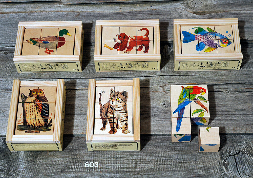 Würfelpuzzle Tiere im Holzhintergrund von Atelier Fischer